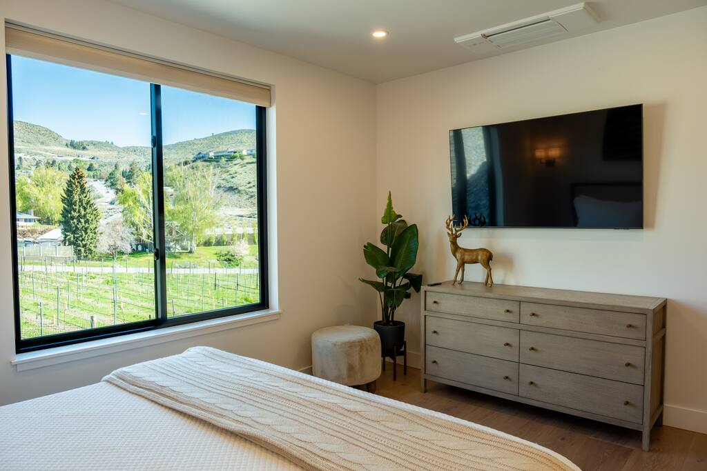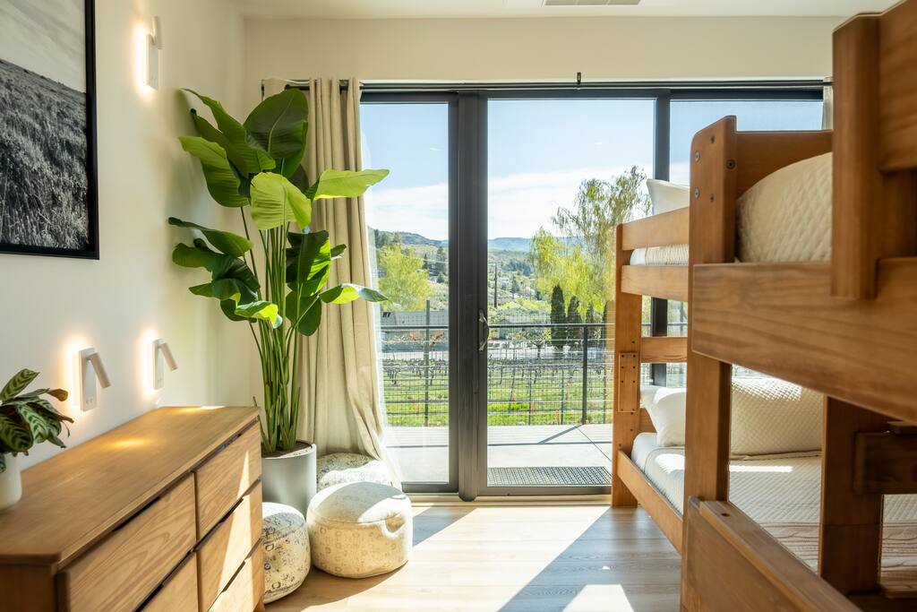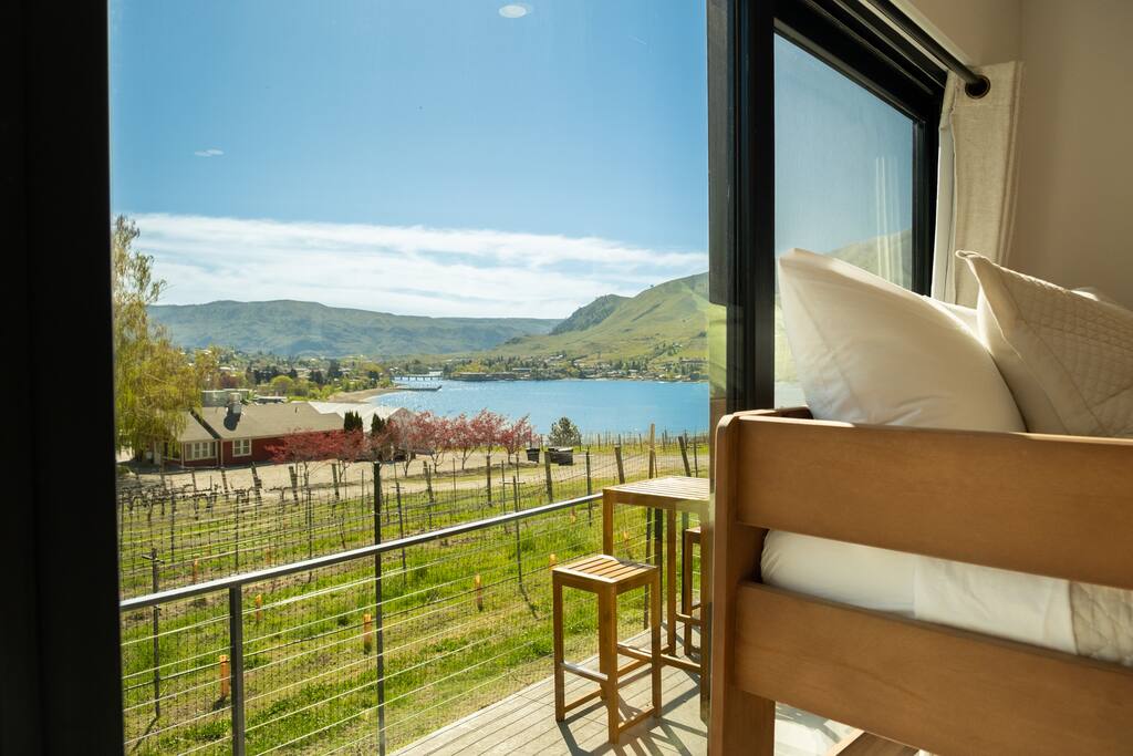 This spacious villa sleeps up to 20 guests with 14 bed: 4 kings and 10 queens (the bunk beds are all queen-sized). Four king en-suite and two bunk rooms. Designed for relaxation and comfort, the villa includes a massive dry cedar sauna, steam room, cedar cold plunge, shower dunk bucket and an outdoor private swim hot tub. The fully-equipped kitchen has everything you need to cook meals for your group, while the outdoor gas fire pit and grill offer the perfect setting for outdoor gatherings. Enjoy the stunning views from the deck overlooking Lake Chelan and surrounding mountain ranges. The Villa is surrounded by a vineyard on two sides and is a short walking distance to the Vin Du Lac winery and bistro. Located just a short drive from the golf course and vibrant Chelan downtown, you'll have easy access to local stores, restaurants, and everything else the area has to offer. Enjoy breathtaking views of Lake Chelan from nearly every room. Scenic walking trails invite you to explore the stunning surroundings. Please note: The Vineyard Villa’s community features two pools, reserved for homeowners and their guests per HOA regulations. While Vineyard Villa does not enforce these restrictions, the HOA may choose to do so at any time. But the real magic happens at our stunning beach and marina, open to all! Relax on plush loungers under shaded umbrellas, let the kids build sandcastles on our sandy beach, or take a thrilling leap from the jumping dock. The marina is your gateway to adventure, offering moorage, boat rentals, and jet ski rentals for unforgettable days on the water. Come live the dream at Vineyard Villa—where the beach and marina are your playground! Whether you're planning a family reunion, corporate retreat, or special celebration, Vineyard Villa provides the perfect lakeside escape. STR-0546