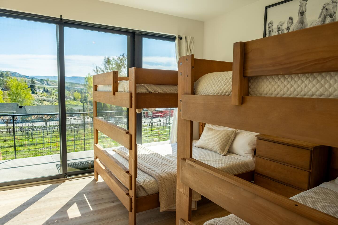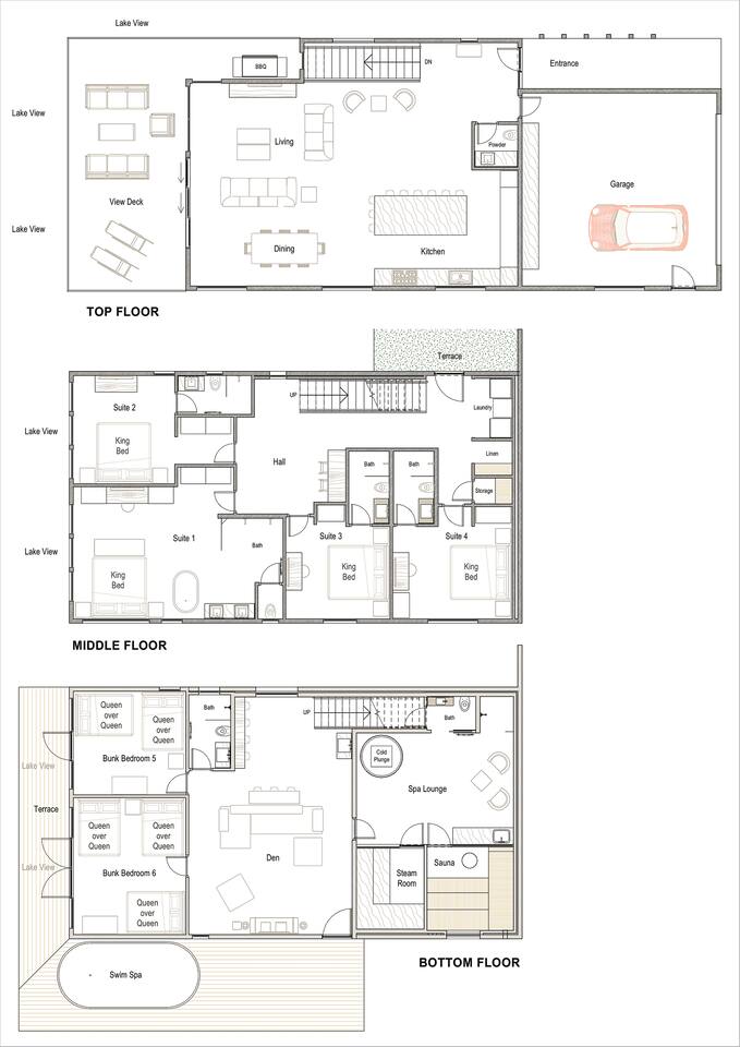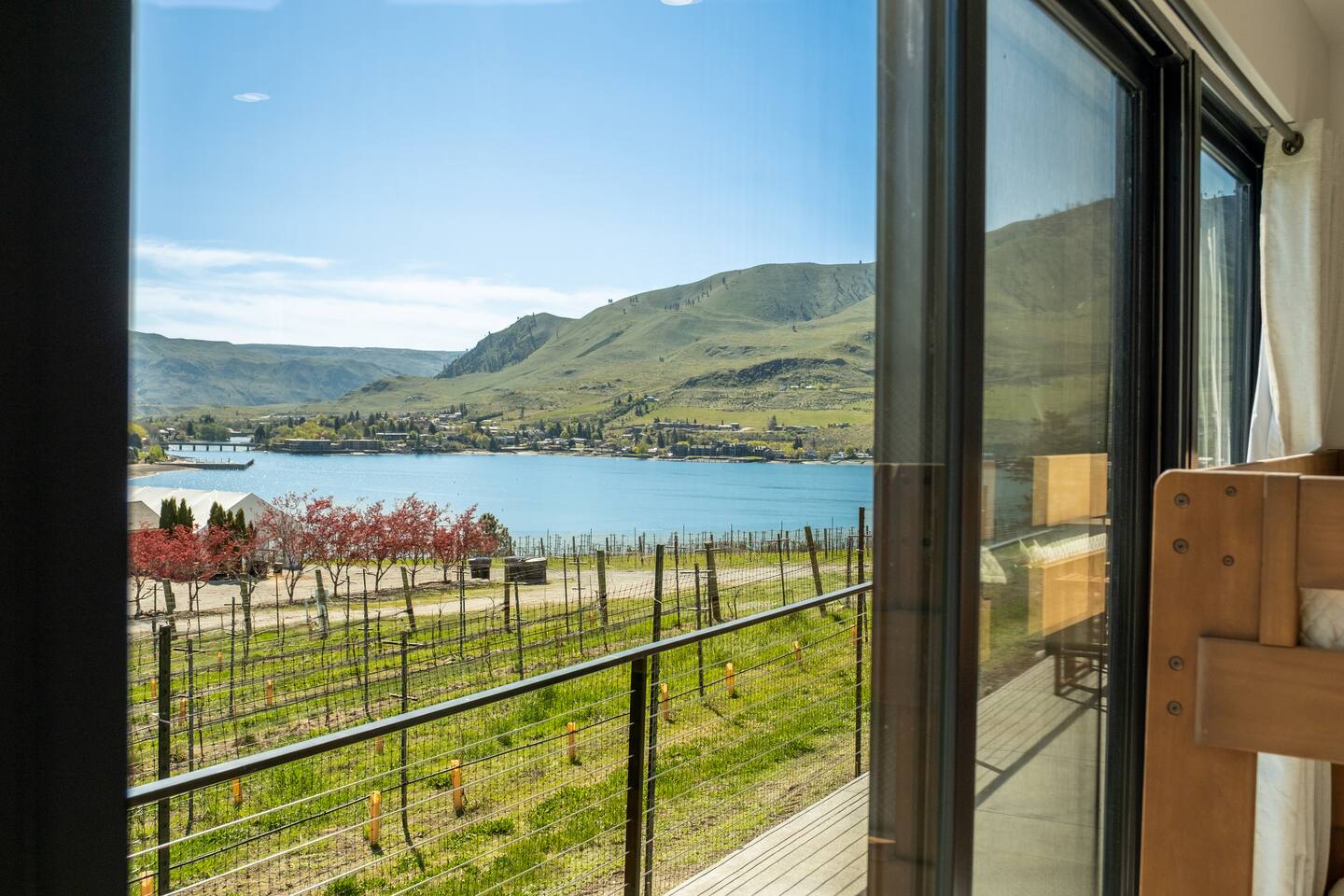 This spacious villa sleeps up to 20 guests with 14 bed: 4 kings and 10 queens (the bunk beds are all queen-sized). Four king en-suite and two bunk rooms. Designed for relaxation and comfort, the villa includes a massive dry cedar sauna, steam room, cedar cold plunge, shower dunk bucket and an outdoor private swim hot tub. The fully-equipped kitchen has everything you need to cook meals for your group, while the outdoor gas fire pit and grill offer the perfect setting for outdoor gatherings. Enjoy the stunning views from the deck overlooking Lake Chelan and surrounding mountain ranges. The Villa is surrounded by a vineyard on two sides and is a short walking distance to the Vin Du Lac winery and bistro. Located just a short drive from the golf course and vibrant Chelan downtown, you'll have easy access to local stores, restaurants, and everything else the area has to offer. Enjoy breathtaking views of Lake Chelan from nearly every room. Scenic walking trails invite you to explore the stunning surroundings. Please note: The Vineyard Villa’s community features two pools, reserved for homeowners and their guests per HOA regulations. While Vineyard Villa does not enforce these restrictions, the HOA may choose to do so at any time. But the real magic happens at our stunning beach and marina, open to all! Relax on plush loungers under shaded umbrellas, let the kids build sandcastles on our sandy beach, or take a thrilling leap from the jumping dock. The marina is your gateway to adventure, offering moorage, boat rentals, and jet ski rentals for unforgettable days on the water. Come live the dream at Vineyard Villa—where the beach and marina are your playground! Whether you're planning a family reunion, corporate retreat, or special celebration, Vineyard Villa provides the perfect lakeside escape. STR-0546