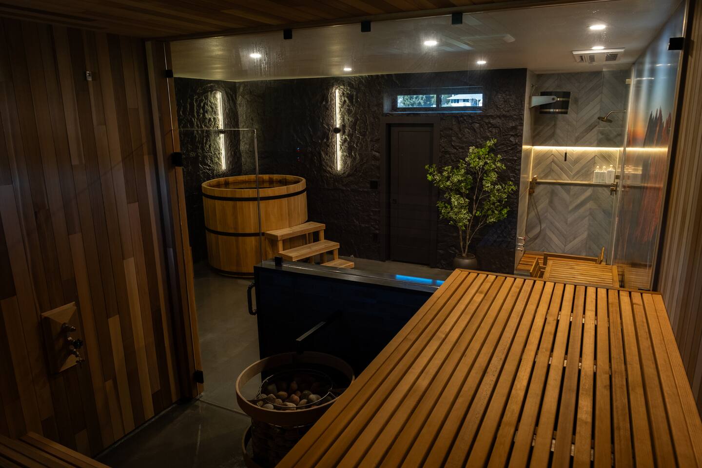 Relax in Luxury with Cedar Sauna, Steam Room, and Scenic Views